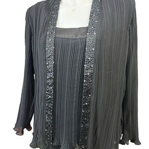 Scarlett Nite Woman 2 Piece Beaded & Pleated Cardigan & Tank Set sz 14 W