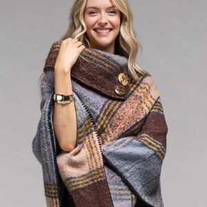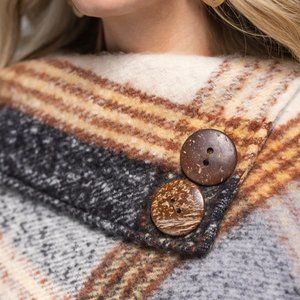 Stay warm and stylish while you step out in this Woven Plaid Poncho with Button Detail. It's made from 100% Polyester for cozy comfort, and features a unique button neck detail for an unexpected surprise. The approximate measurements of 31" L x 30" W make this poncho perfect for any size. Slip it on and let the style do the talking!