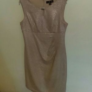 Gorgeous in the light or when light hits it. Worn once for a wedding. Comes a little past the knee . It is stretchy so it fits really nice.