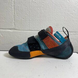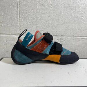 Scarpa Force V Rock Climbing Shoes Blue Black Suede Hook & Loop Women's 7 US