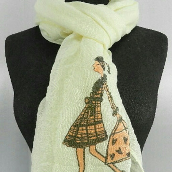 Fashion Deco cream working girl print overlong scarve...30% cotton 70% viscose