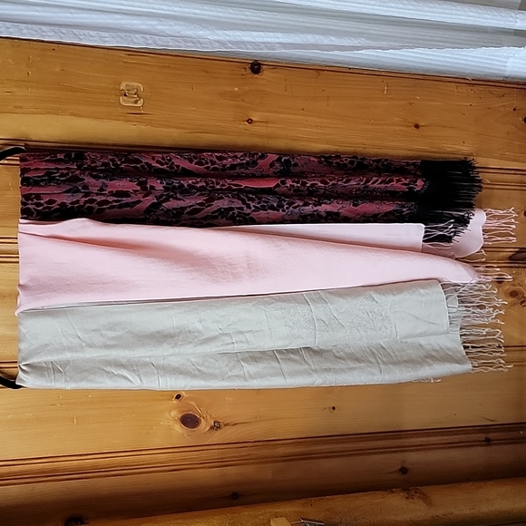 Three scarves, various colors and materials, excellent condition