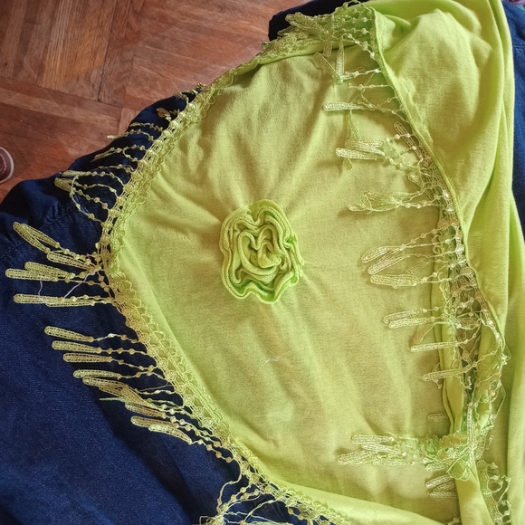 2 scarves. one is olive green, one is neon green.