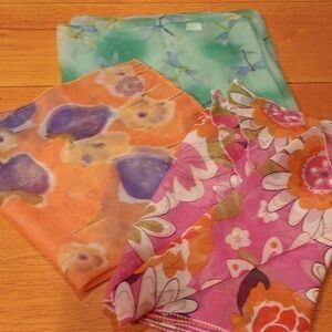Hot Pink Flowered Scarf, 100% polyester. 10.5"×60", see picture for tapered ends.
