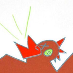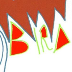 A punked-out sparrow with extra long legs as he squawks for dear life. The custom type underneath his wings reads 'SCARY BIRD'.