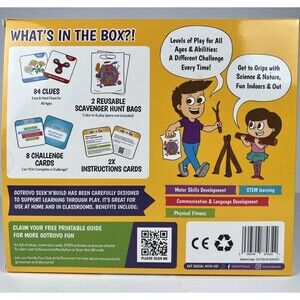 The Scavenger Hunt Seek 'n' Build game by Gotrovo is a skill and action game designed for kids aged 4 and above. With a strategic theme, this complete game requires a minimum of 2 players and encourages both boys and girls to engage in fun indoor and outdoor find-it challenges. In 2019, this game was designed in the UK and manufactured in China and does not require batteries for play, making it a great interactive and entertaining option for young individuals looking to test their problem-solving and critical thinking skills.