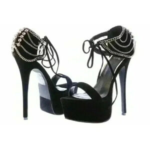Scene Amorita Draped Chain-Link, Delicately Strapped Black Platform Sandal NIB