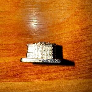 The Scene It The Disney Channel Edition Game The White House Replacement Pawn Mover is a metal game piece designed for the Screenlife brand's trivia game, Scene It. This silver-colored pawn features a unique design inspired by Disney characters, making it a fun and interactive addition to the game. Suitable for various age levels, this replacement pawn mover is a must-have for fans of Disney and trivia games alike.