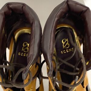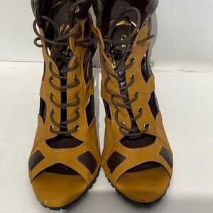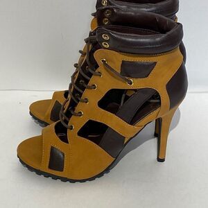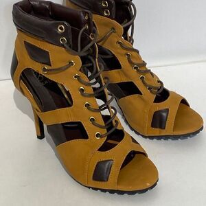 Scene Weaver Women's Lace Up Open Toe 5" High Heel Brown Booties Size 8