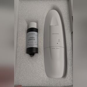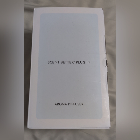 Scent Better plug in aroma diffuser. Sleek white design. Comes with a bottle of oil. Works well, I did test it. You must download the app to control the diffuser.