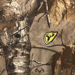 Visible Logos/Markings: Yellow deer head shield ScentBlocker patch on chest; Realtree antler logo printed in the camo