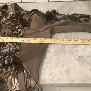 Color/Pattern: Realtree-style camouflage with brown/green tones and solid stretch side panels