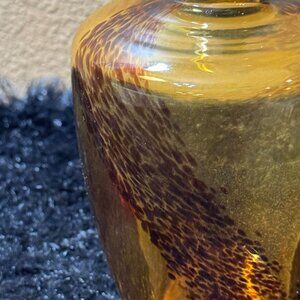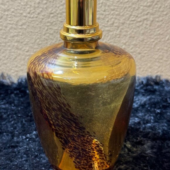 This decorative oil fragrance bottle features a rich amber hue with a striking leopard print design.