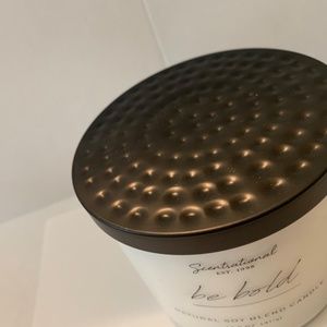 New! Scentsational Be Bold candle! 14.5 oz. Natural soy blend wax. Light, airy scent, not too overpowering. Perfect for those who are sensitive to scented candles