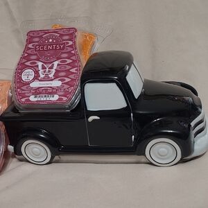 Charming retro black ceramic truck. Includes 4 Scentsy wax melts in vibrant colors and scents shown in pictures.