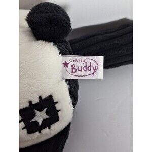 The Scentsy Buddy Shu Shu Panda is a medium-sized plush stuffed animal featuring a black and white Panda design. This retired Scentsy product comes with a scent pack, making it a scented toy perfect for children aged 3 and up. It is suitable for all occasions and recommended for various age levels, from 3-4 years old to adults. Made in China, this cuddly Panda is sure to bring joy and a delightful scent to anyone who receives it. Hibiscus pineapple scent included, small stain on the front.