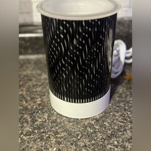 Scentsy Full Size Wax Warmer IN MOTION geometric spinning RETRO Black & White