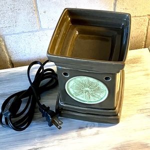 This wax warmer lights up with a bulb and melts wax (no flame) which is a plus. The cord has on and off switch.