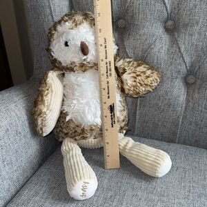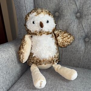This is a Scentsy Buddy named Oakley the Owl. Scentsy Buddies are plush toys with a zippered pouch designed to hold a Scentsy Scent Pak, which releases fragrances. This one is made of polyester fibers and plastic pellets, with a zipper closure to hold the scent pak.