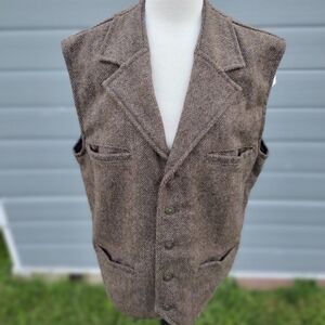 Schaefer Western Wool Vest Brown Herringbone McClure Style 707 USA Men's Large.