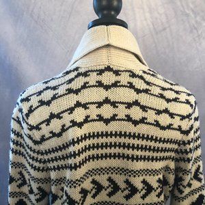 Mid-thigh length knit cardigan with over-size rose print. Great for dressing up a pair of leggings and a top and still stay cozy.