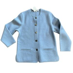 Scheiber M. 100% Wool Light Blue Vintage Smoking Jacket Crest Buttons Women’s M