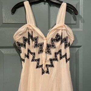 Two of the three buttons have tiny diamond-like jewels in center (one is missing). No rips or tears, in excellent condition for the vintage age of this beautiful piece, and was apparently not worn or was lightly worn many years ago. Double layer of very soft nylon. Label also in excellent condition, "Paris, New York". Tag states size 36. Measures 31.5 inches below arm pits (15.75 inches front and back measurements X2), 53.5 inches length.