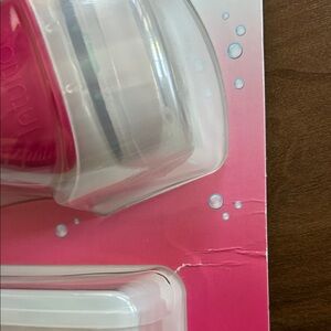 Schick Intuition Island Berry razor set with pink handles. Includes two razor handles and 12 cartridges. Packaging is bent but unopened.