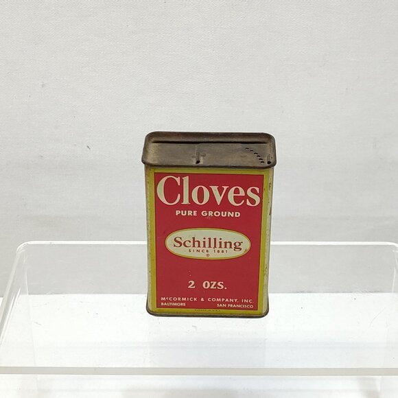 Schilling & Co Cloves Spice Tin 2 Oz 1930s Retro Kitchen Décor Collectible VTG