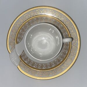 Schirnding Bavaria Gold Footed Tea Cup With Saucer and Luncheon Plate Set