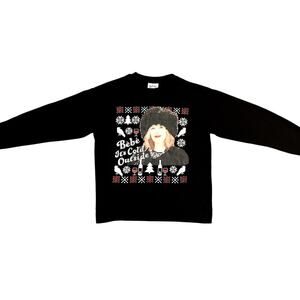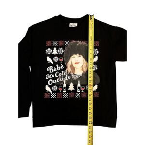Get cozy and festive with this Schitt's Creek inspired Christmas sweatshirt, featuring one of Moira Rose's iconic holiday lines: "Bebe, it's cold outside." This black sweatshirt is the perfect way to channel Moira's chic, quirky style while staying warm during the holiday season. Whether you're binge-watching Schitt's Creek, attending a holiday gathering, or simply embracing the festive spirit, this sweatshirt is sure to add a touch of humor and class to your wardrobe.