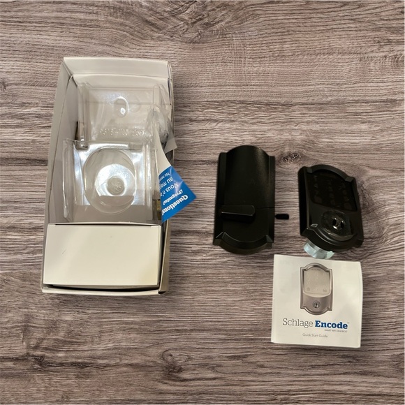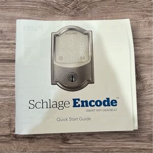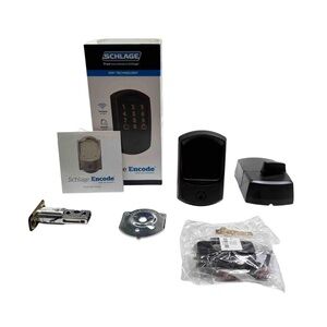 Schlage Encode smart lock in sleek black. Includes components and quick start guide.