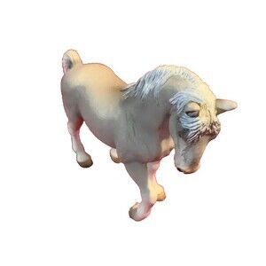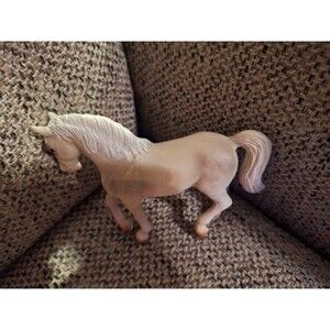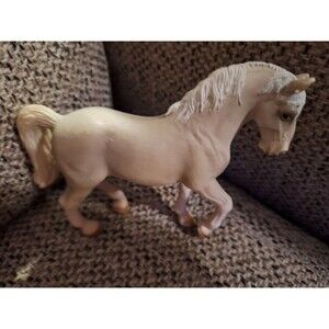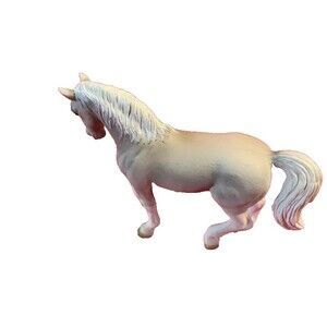 This vintage horse figure from 2004 was made in China for Schleich of Germany. This is what I believe is a Lipizzaner Stallion, but I could be wrong. Its mane and tail are white, and its body is a light grayish color. It measures approximately 5 x 4, and is made of durable hand-plastic. This estate sale collectible is in great condition