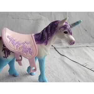 Schleich Olaria Unicorn Foal PVC Figure, Baby Unicorn, Colt, #70589, Mythical with pink floral saddle in good condition