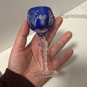 This is a beautiful Schliff Schleuder Nachtmann Cobalt Blue Cut Crystal Tall Stem Sherry Cordial 5” width 1.75”.