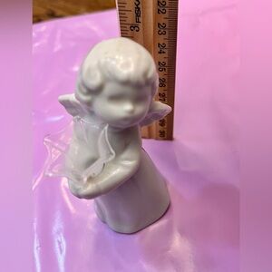 Research is indicating that this is a porcelain Schmid Bros angel but there is no mark.