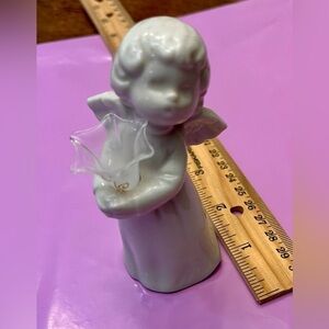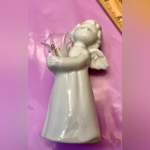 Schmid Bros Porcelain Angel Holding vase etched in gold Christmas Holiday Gift