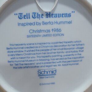 Schmid Hummel Christmas 1986 "Tell The Heavens" Decorative Wall Hanging Plate