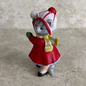 Here is a Vintage Schmid Kitty Cucumber Figurine Throw a Snowball 1989 in fine condition with no damage