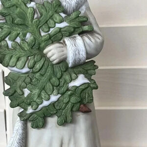 Vintage Schmid Santa dressed in white carrying Christmas tree. Music plays Walking In a Winter Wonderland.porcelain bisque very fragile