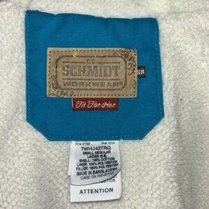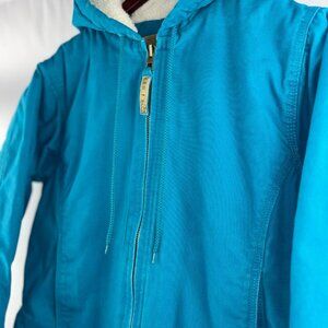 Good condition, Schmidt Workwear Fit-For-Her Women's Hooded Jacket. Built for durability and designed to fit women’s frames perfectly, this jacket is the ultimate blend of functionality and comfort for work or casual wear. Features a durable canvas exterior tough enough to handle hard work, a cozy sherpa-lined hood for warmth and comfort, and a tailored fit designed specifically for women.