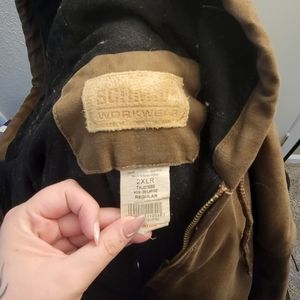 brown Schmidt jacket. similar to a carhartt. brown. worn, but no damage. size 2x. really warm for colder season.
