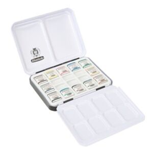 Schmincke Horadam Aquarell metal box Inspiration Set of 12 is a compact set that contains 12 inspiring colors beyond the standard color selection (e.g. perylene violet and deep sea green) and is well suited for mixing other colors.