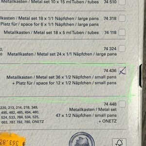 - This set contains 36 different color of Schmincke Horadam 'half pan' watercolor paints with space for 12 additional.