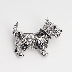 Schnauzer Adorable Dog Crystal Brooch White Gold …