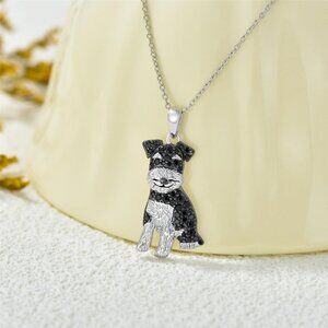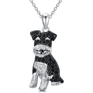 Schnauzer Pet Lovers Dog Breed Puppy Owners Rhodium Sterling Silver CZ Necklace