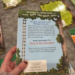 Scholastic magic tree house set of 11 books, book #1 dinosaurs before dark, book #4 pirates past noon, book #5 night of the ninjas, book #8 midnight on the moon, book #11 lions at lunchtime, book #16 hour of the Olympics, book #17, tonight on the titanic, book #19 tigers at twilight, book #33 carnival at candlelight, book #38, Monday with mad genius, book #45 a crazy day with cobras, wear to book # 38 as shown in picture and cover is bent on book # 33 as shown in picture