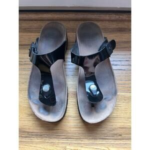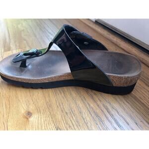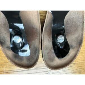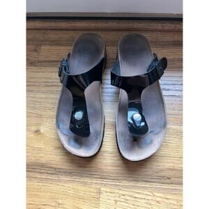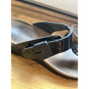 Scholl Black patent Thong Toepost Sandal BIOPRINT EUR 36 Size 5.5