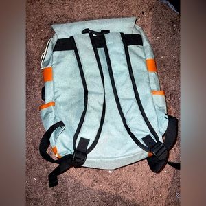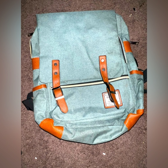 Comes with built in charger port| no broken zippers or torn straps| plenty of hidden pockets| loads of space| gently used