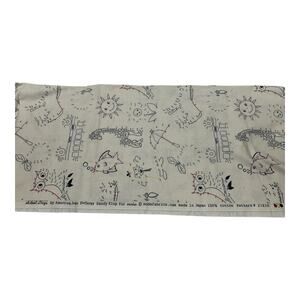 Adorable novelty fabric. “School Days” by American Jane Patterns. Sandy Klop for Moda Fabrics. Made in Japan. 100% cotton. Dot-to-Dot children’s print with animals, people, school bus, fruit on a light beige background. Just under a yard - 33”.